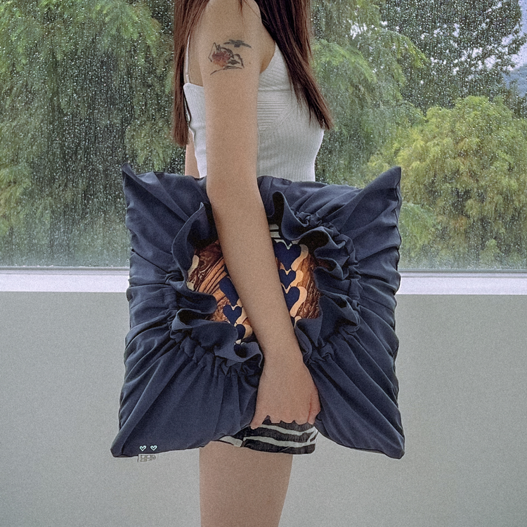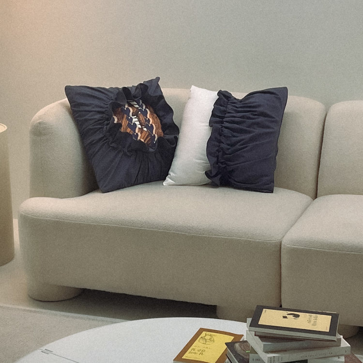 Intellectual Artist's room grows deeper over time, layered with personal taste. Designed for such spaces, Saho’s Cuveree cushion outer embodies Goethe’s ideas of 'void' and 'fullness'. At the center lies an open space—an invitation to express your own aesthetic freely. Guided by Goethe’s belief that emptiness is the very condition for fullness, the design turns philosophy into form. Dark blue color creates a sense of depth in the center, making the inner more unique. Only 40 units of the Blue Fountain Cuveree were produced.